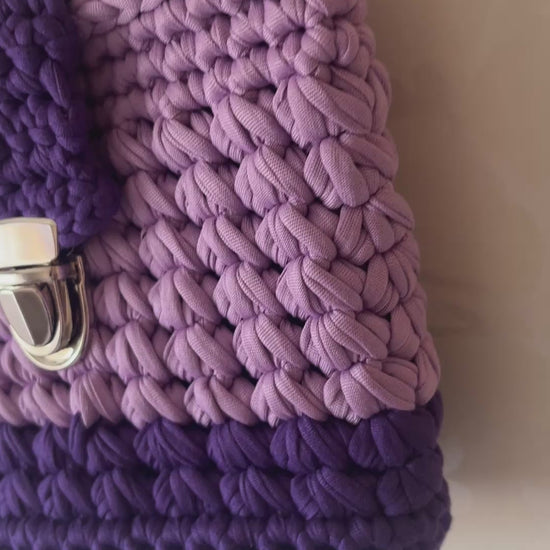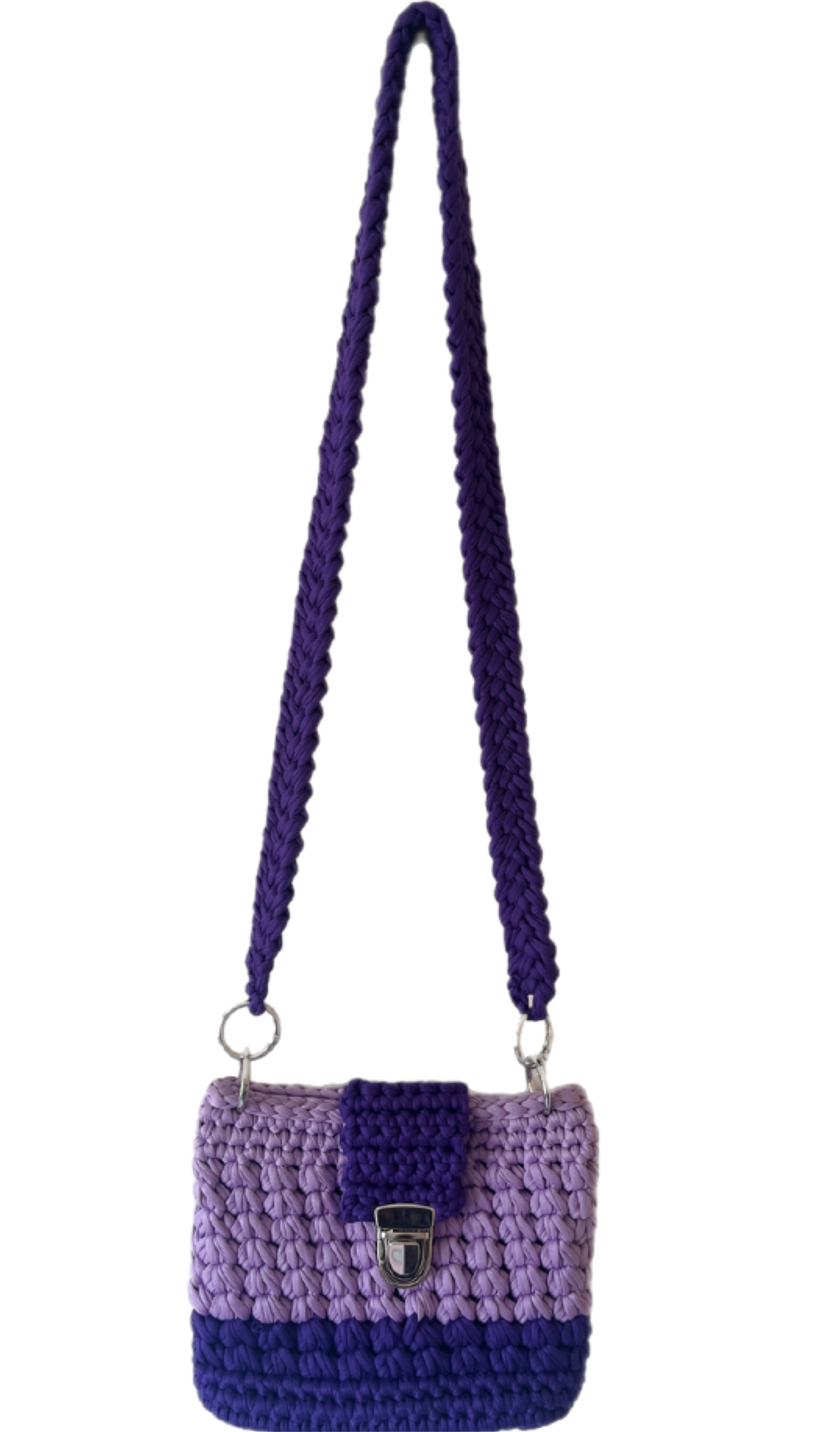 This light and dark purple shoulder bag features a silver buckle closure and a size of 20x5x15 cm. With a strap length of 92 cm, it is perfect for holding personal items such as phone, purse, and makeup. The inside is lined, making it suitable for any occasion. New customers receive an automatic discount at checkout and orders over £20 qualify for free shipping.