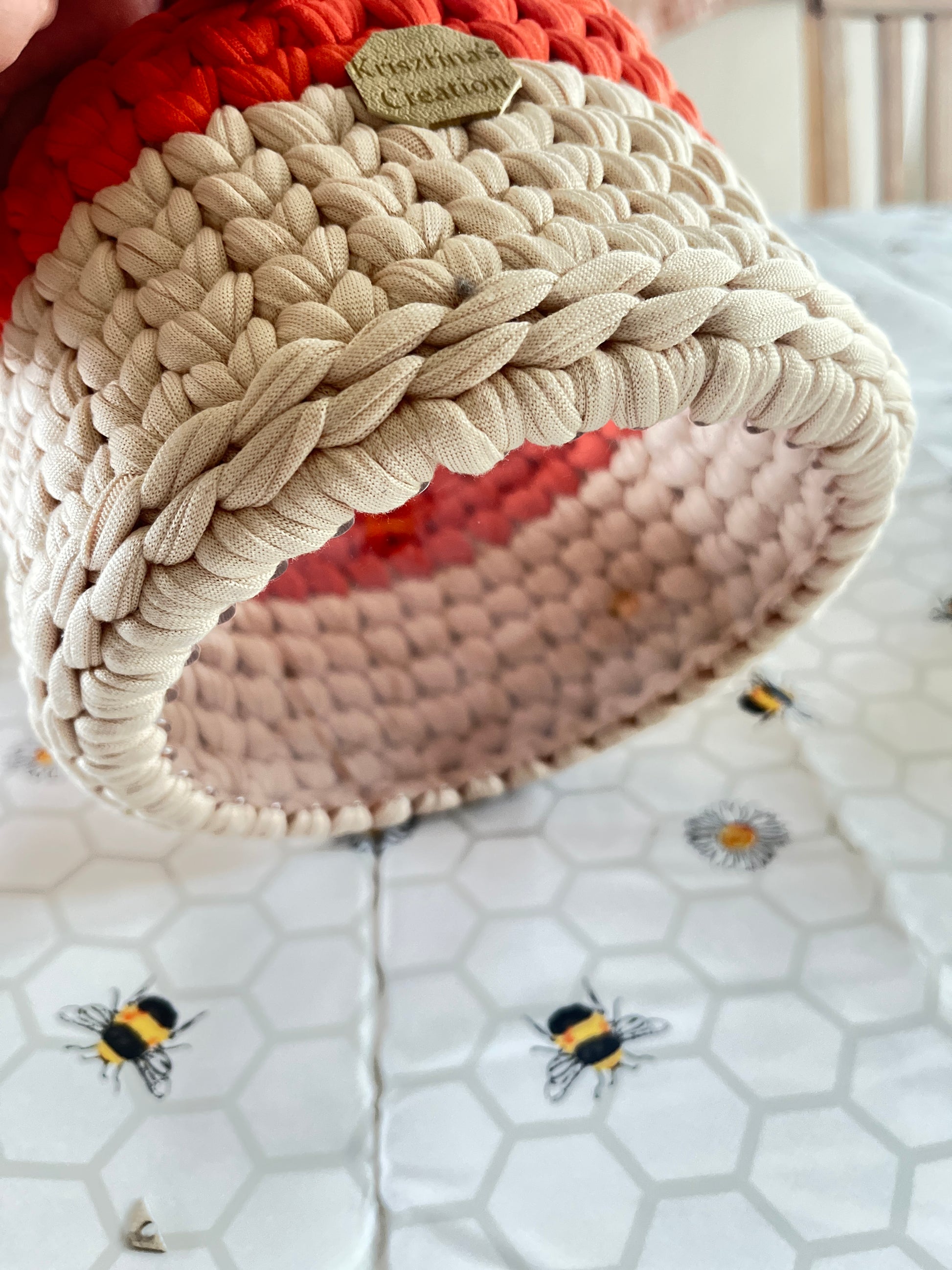 Organize your little one's room with our durable storage set. The wet wipe holder (22x8x14cm) and two round baskets (15cm and 10cm in diameter) offer functional and decorative storage. Made with double thickness elastic T-shirt yarn, it's strong and long-lasting for all your baby's needs.